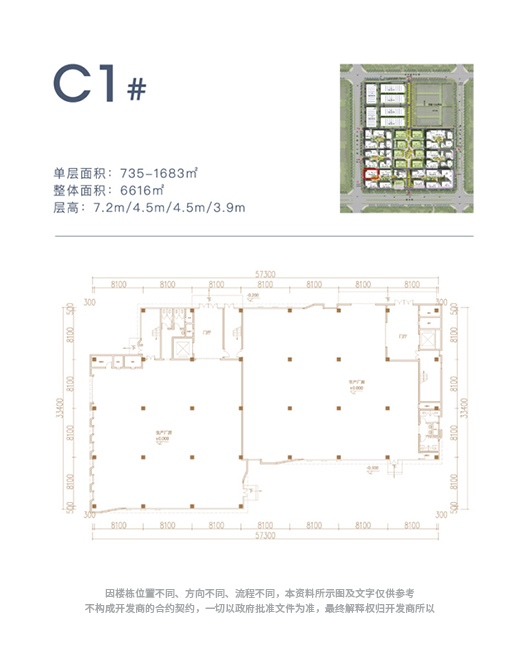 在空间布局上,园区整体规划了芯屏设计产业区、芯屏电子制造产业区、芯屏厂房定制区、智能制造产业区及园区配套区五大功能分区。一期拟建成9栋单体,包含7栋芯屏研发及生产厂房、1栋智能制造产业厂房、1栋园区展示中心。在产品设计上,单体建筑面积约4000-6000㎡,首层层高7.2m,标准层层高4.5m,二楼以上承重0.5T/㎡,层数3-4层,一楼可以满足企业研发与重型生产需求、二楼以上可以开展研发、办公及轻型组装生产。单体建筑空间组合灵活,可分可合,可满足企业从研发、中试、产业化不同发展阶段空间需求。
